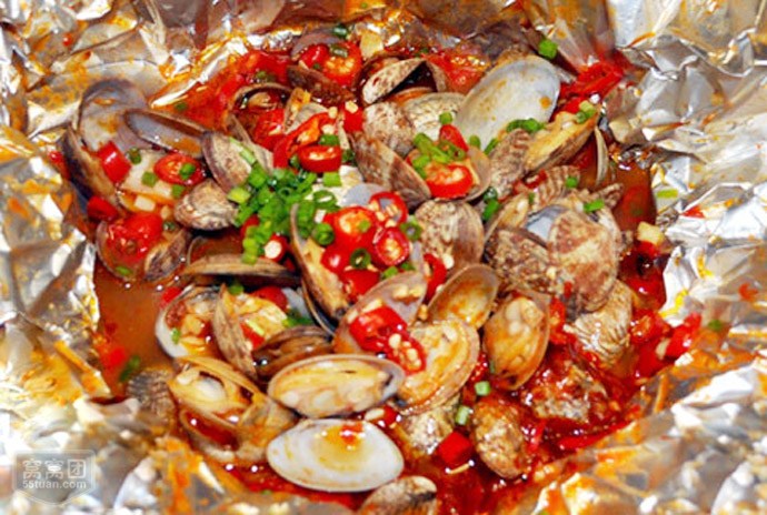 开心花甲又名花甲粉、锡纸花甲,近年在湖南省长沙的夜宵摊流行的风味小吃,源自夜宵街,现在已经风靡全城。