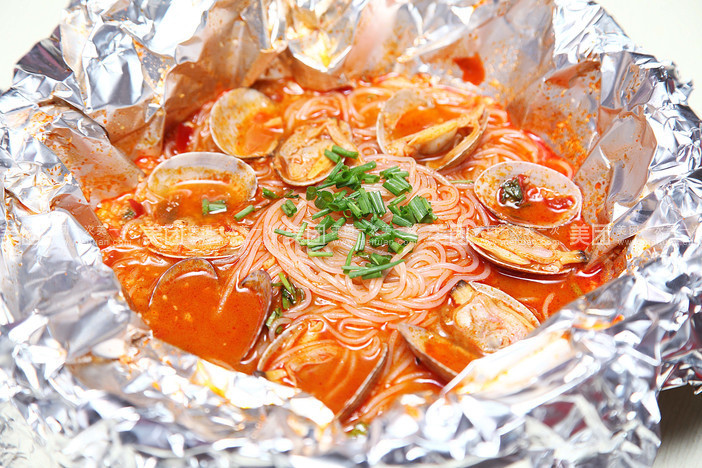 开心花甲又名花甲粉、锡纸花甲,近年在湖南省长沙的夜宵摊流行的风味小吃,源自夜宵街,现在已经风靡全城。