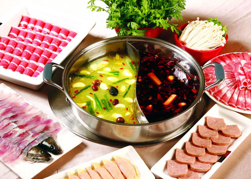 麻辣火锅是国内火锅的一个重要派别,分为四川和重庆两派,一柔一刚,泾渭分明。四川火锅,麻辣,鲜香,油少;重庆火锅,火辣,味重,味足,又称为毛血旺火锅。原料主要是牛毛肚、猪黄喉、鸭肠、毛血旺等。他来源于民间,升华于庙堂,无论是贩夫走卒、达官显宦、文人骚客、商贾农工,还是红男绿女、黄发垂髫,其消费群体涵盖之广泛、人均消费次数之大,都是他地望尘莫及的。作为一种美食,火锅已成为中国美食的代表。