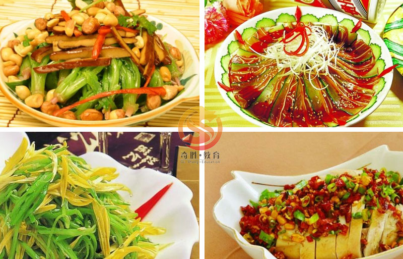 凉菜,在饮食业俗称冷荤或冷盘。它是具有独特风格,拼摆技术性强的菜肴,食用时数都是吃凉的,称之为凉菜。凉菜切配的主要原料大部分是熟料,因此这与热菜烹调方法有着截然的区别,它的主要特点是:选料精细、口味干香、脆嫩、爽口不腻,色泽艳丽,造形整齐美观,拼摆和谐悦目。