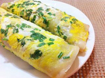 煎饼果子是天津市的著名小吃。天津人把其作为早点,由绿豆面制作的薄饼,鸡蛋,还有馃子(油条)或者薄脆的“馃篦儿”组成,配以面酱,葱末,香菜,辣椒酱(可选)作为佐料。