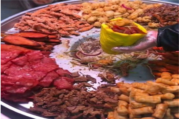 6.布袋馍的夹制菜品的完成及各种菜品的搭配调味等;