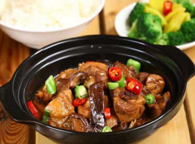 黄焖鸡米饭又叫香鸡煲,浓汁鸡煲饭。是源自山东省传统名吃,属于鲁菜系。该小吃成后色香味美,口感鲜嫩透味不粘腻,香味浓郁。无论口感,视觉,色泽都属上品,令人回味无穷,百吃不厌。