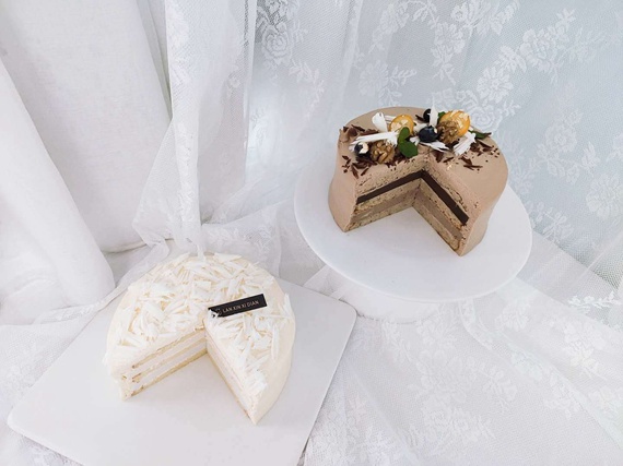 主要是掌握蛋糕较后的平衡感,以视觉平衡判定,色彩较深则较重较轻的一边可以增加些重色。