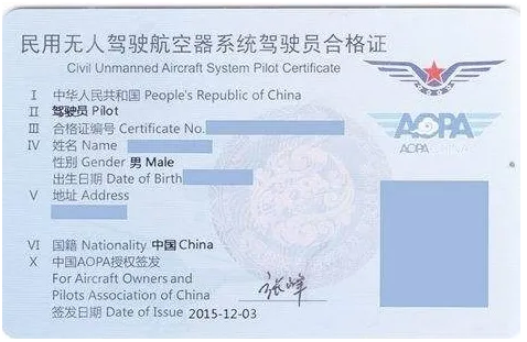当培训无人机技术合格后,会由民航局颁发无人机AOPA驾驶员合格证书