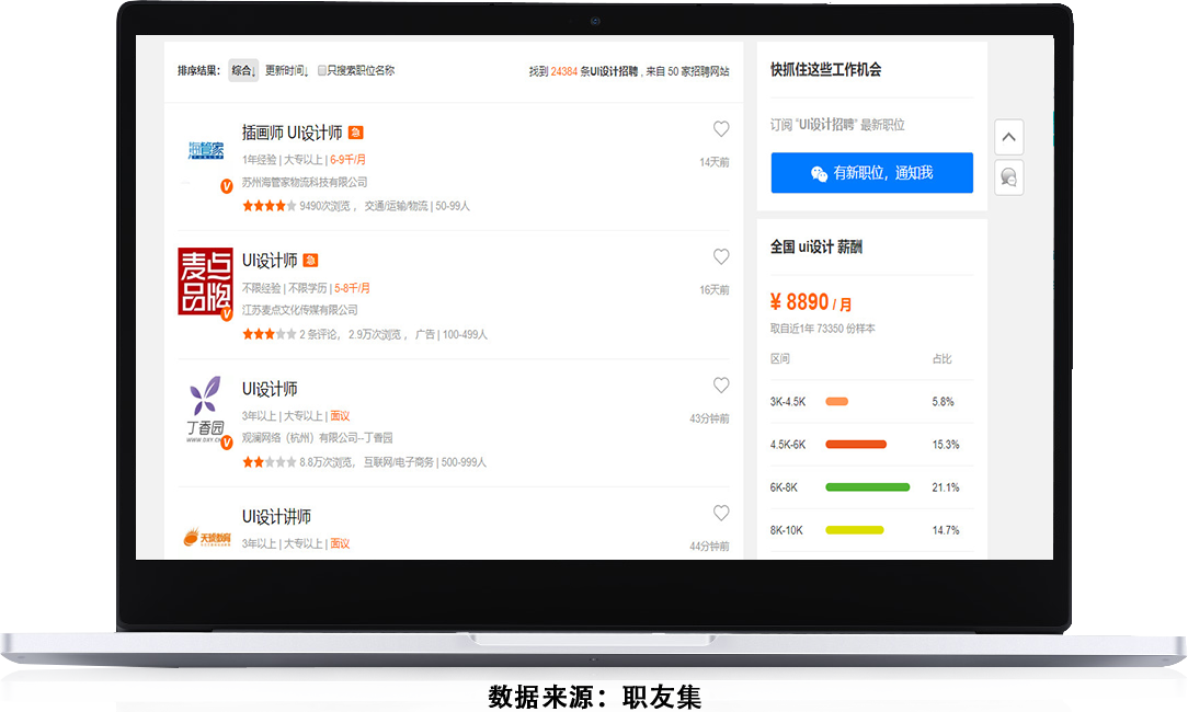 全国71家大中型招聘网站,单日发布了24384条与UI设计相关的招聘信息