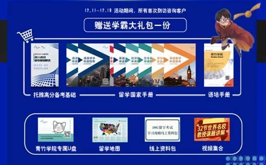 2022.12.11—2022.12.19,到访享好礼,天津青竹留学不仅为各位学员们安排有优质的教学和指导好课,更有丰富多样的教学备考教辅,托福雅思备考宝典、出国留学考试手册、10G线上学习资料包、32节世界高校教授课题讲解统统送给你,让你语培学习不再有障碍,让留学之路能够更轻松!