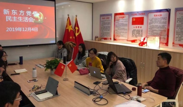 苏州新东方学校党委于2022年12月4日上午9点30分在南开校区党建活动室召开党委民主生活会。会议进行三个议程:一:组织观看《老党员讲初心使命》专题片;二:召开民主生活会及学习文件;三:研究审议成立党支部相关事宜。