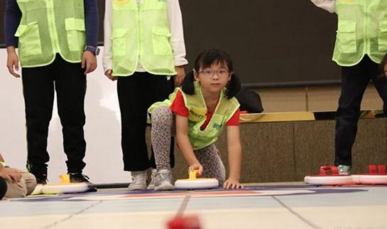 地壶球源于冬奥运动项目冰壶。考验专注力,团队凝聚力,个人思考力,有冰上国际象棋之称。两组学生一队执红球,一队执黄球,两队将球抛向赛道中心的营垒,也可以把对方的球撞出营垒,直至赛道上哪队的球距离营垒圆心越近,哪队获胜。