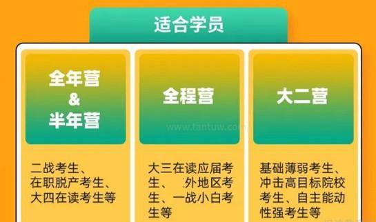 还有相应的半年集训营,同样也是所有科目全部辅导,非常适合二战的、在职脱产还有在外地的考生。在这里,我们会为学员们带来全程的备考服务体验,包括从营前、营中、营后还有考前考后,都能够为学员们提供优质的教学和高端的辅导,这对于学员们的学习来说有很大的帮助。