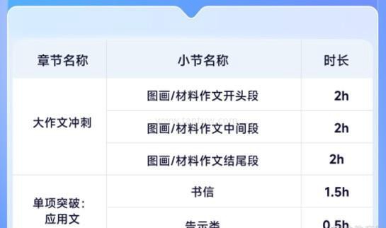 先来说说《考研作文快速突破班》吧~通过这门课, 你将快速掌握考研英语作文的核心知识点及应试策略和技巧。还能强化你的作文记忆,老师会给你精讲一遍重点的句型和真题。仅需8小时的精华浓缩课程,你就能掌握考场夺分秘籍。