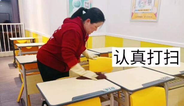 2、保洁每晚彻底打扫教学区卫生,并用消毒液消毒,并放置“今日已消毒”立牌;