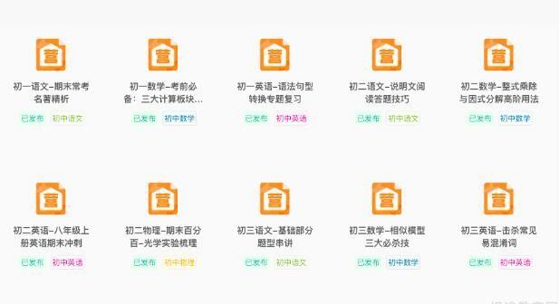 初三语文:基础部分题型串讲;初三数学:相似模型三大必杀技;初三英语:击杀常见易混淆词;初三物理:期末百分百-电学实验梳理;初三化学:三招,让你化学计算猛如虎;